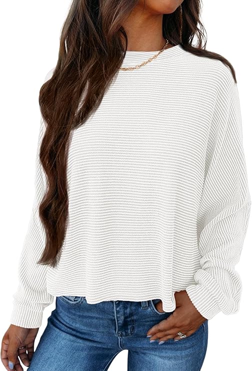 Casual Sweaters for Women Crewneck Ribbed Kint Soft Tops 2024 Fall Fashion Outfits