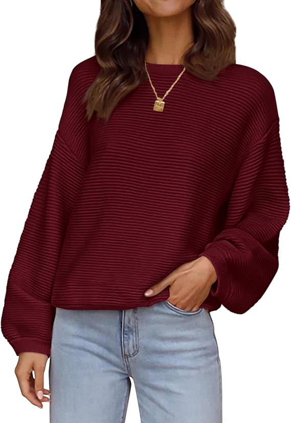 Womens Fall Sweaters 2024 Casual Loose Crewneck Ribbed Long Sleeve Top Knit Pullover Sweater