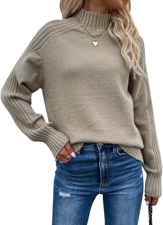 Womens Turtleneck Sweaters Long Sleeve Loose Pullover Sweater Casual Knit Tops