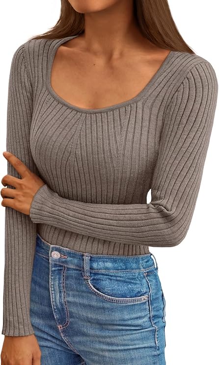 Womens Sweaters Long Sleeve Square Neck Ribbed Knit Tops Slim fit Fall Clothes Fashion Outfits 2024